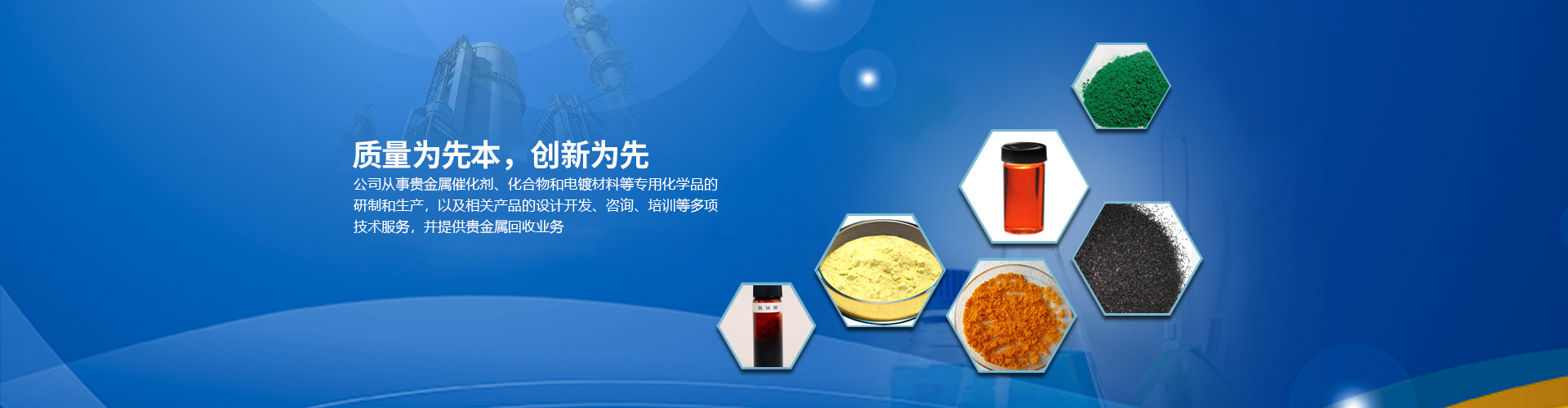 目前公司的主要產(chǎn)品有:醋酸鈀、氯化鈀、硝酸鈀、硫酸鈀、氯鉑酸、反-二(三苯基膦)二氯化鈀、四(三苯基膦)鈀、乙酰丙酮鈀;三氯化銠、辛酸銠、碘化銠、硝酸銠、醋酸銠、三苯基膦氯化銠、三苯基膦乙酰丙酮羰基銠、三苯基膦氯化銠、乙酰丙酮二羰基銠等,廣泛應(yīng)用于藥物合成、石油化工、精細(xì)化工和電鍍領(lǐng)域。本公司對所有產(chǎn)品進(jìn)行嚴(yán)格檢測從定量和定性方面嚴(yán)把質(zhì)量關(guān),并通過ISO90001質(zhì)量體系認(rèn)證。